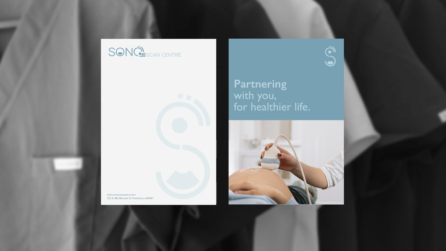 A friendly, Human and Professional identity that conveys trust and commitment. The logo consists of a combination mark incorporating symbolic elements within the text, with an 'S' icon representing an abstract blend of a sonogram and MRI machine.